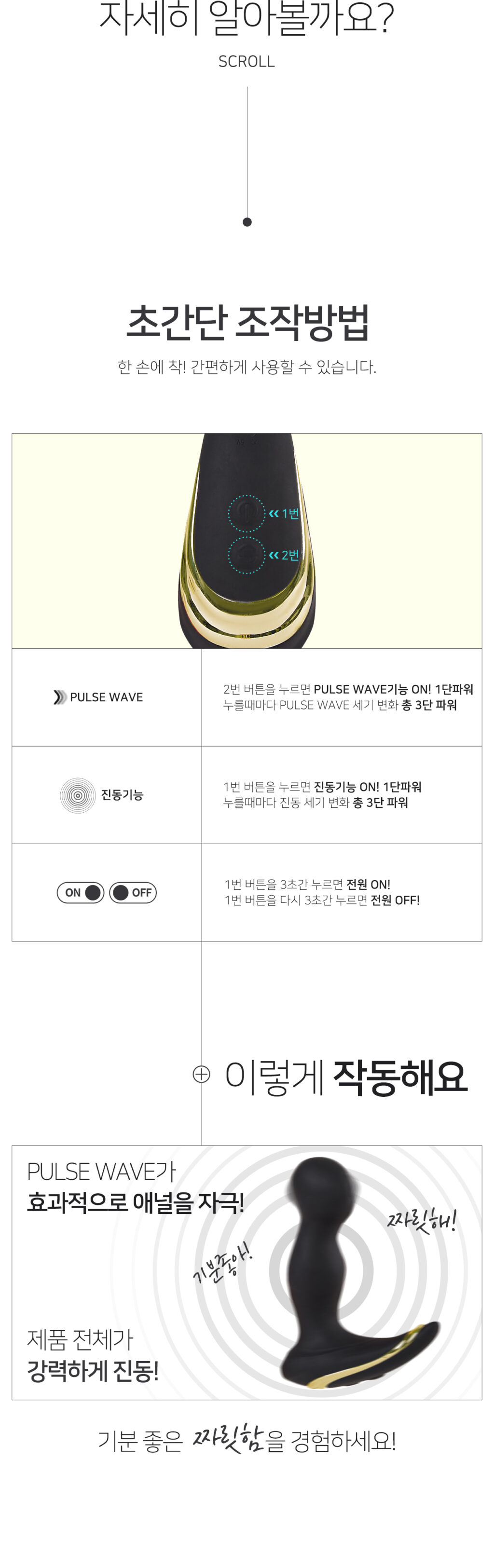 구매포인트 1: 전립선 부분을 정확하게 타격해서 좋았음, 특히 끝부분은 수평으로 진동을 주는데 뭔가 탁탁탁 때려주는 느낌.
