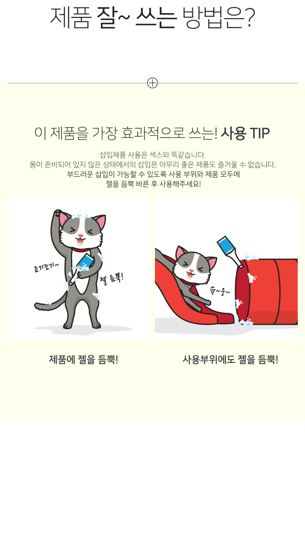 상품의 사용 방법과 유의 사항을 필히 숙지하세요. 윤활제를 꼭 사용하고, 천천히 충분하게 근육이 이완된 상태에서 위생적으로 플레이하세요.