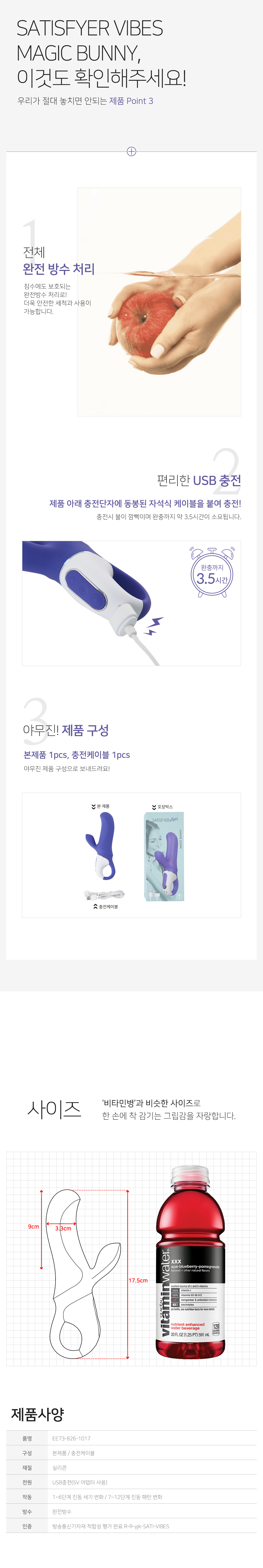 5V, 1A의 완속 충전기를 사용하거나, USB 2.0 포트를 이용해 충전하세요. 고속 충전기 사용으로 인한 제품 고장은 무상 보증이 어렵습니다.